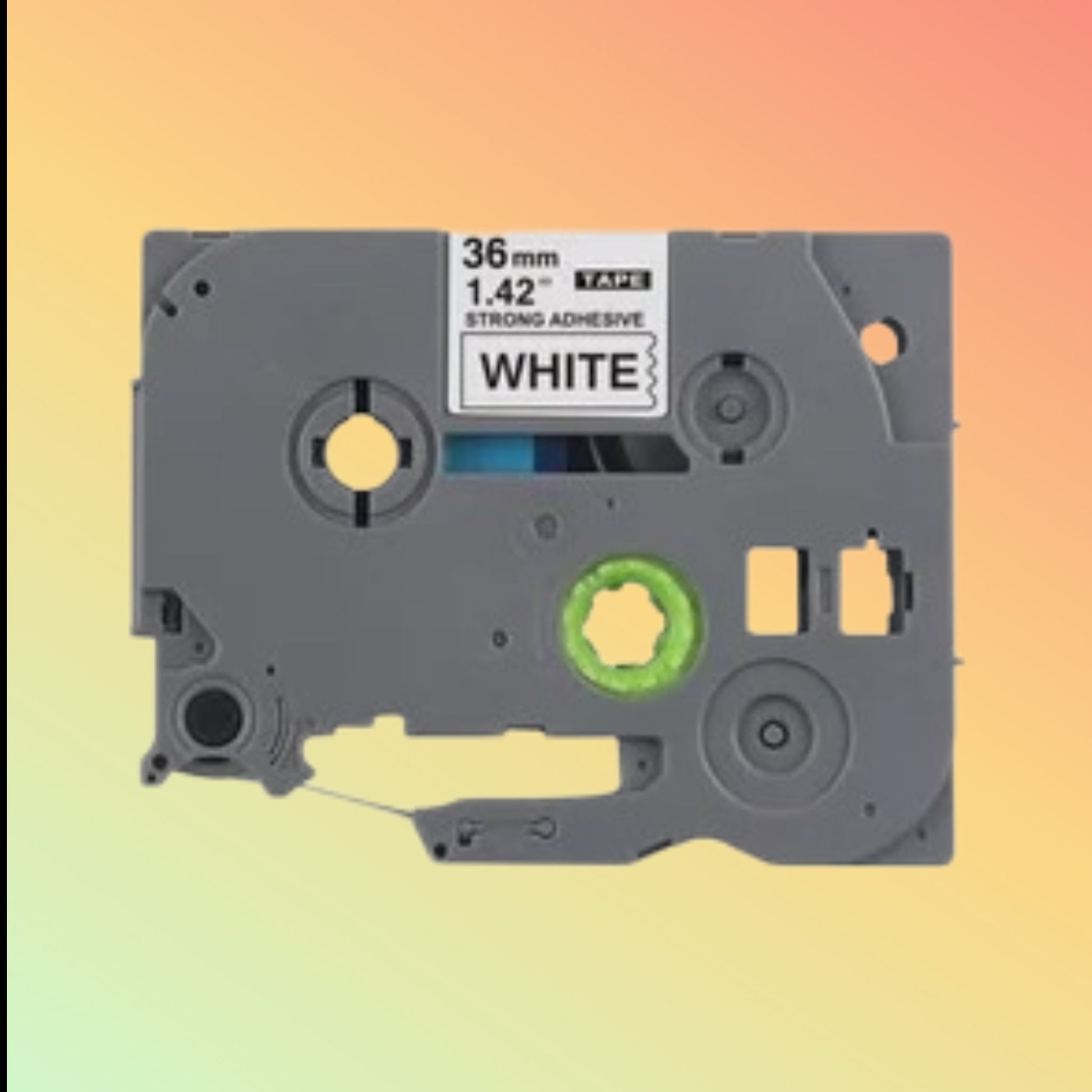 This ribbon cartridge features a 36mm wide tape that is ideal for creating labels that need to stand out and remain legible under tough conditions. It is compatible with specific label printers that accommodate TZ tape, offering a strong adhesive that sticks well to different surfaces, including plastic, metal, and glass. The tape is resistant to water, grease, fading, and temperature changes.