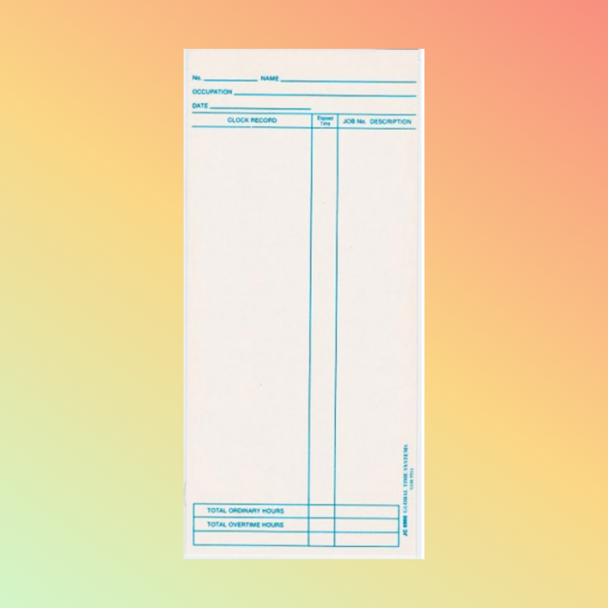 - System Compatibility: Perfectly matches time clocks designed for JC-6900 card formats.