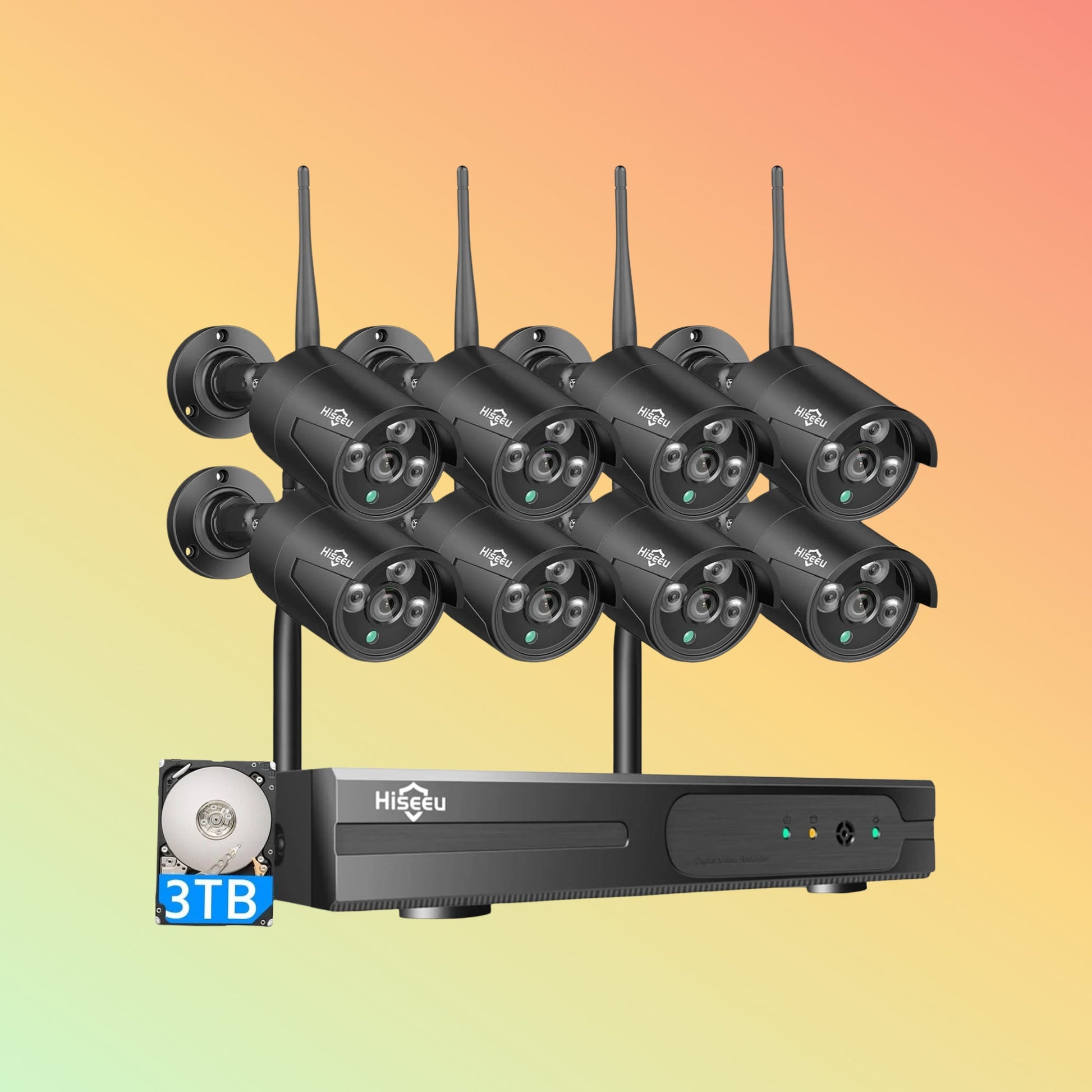 The Hiseeu 5MP Wireless Security System delivers pro-level protection with crystal-clear 5MP video, long-range 100ft night vision, and a robust 4K 16-channel NVR pre-installed with a generous 3TB surveillance-grade HDD. Designed for homes, offices, and industrial sites, this system supports up to 16 wireless cameras with real-time alerts and remote access.