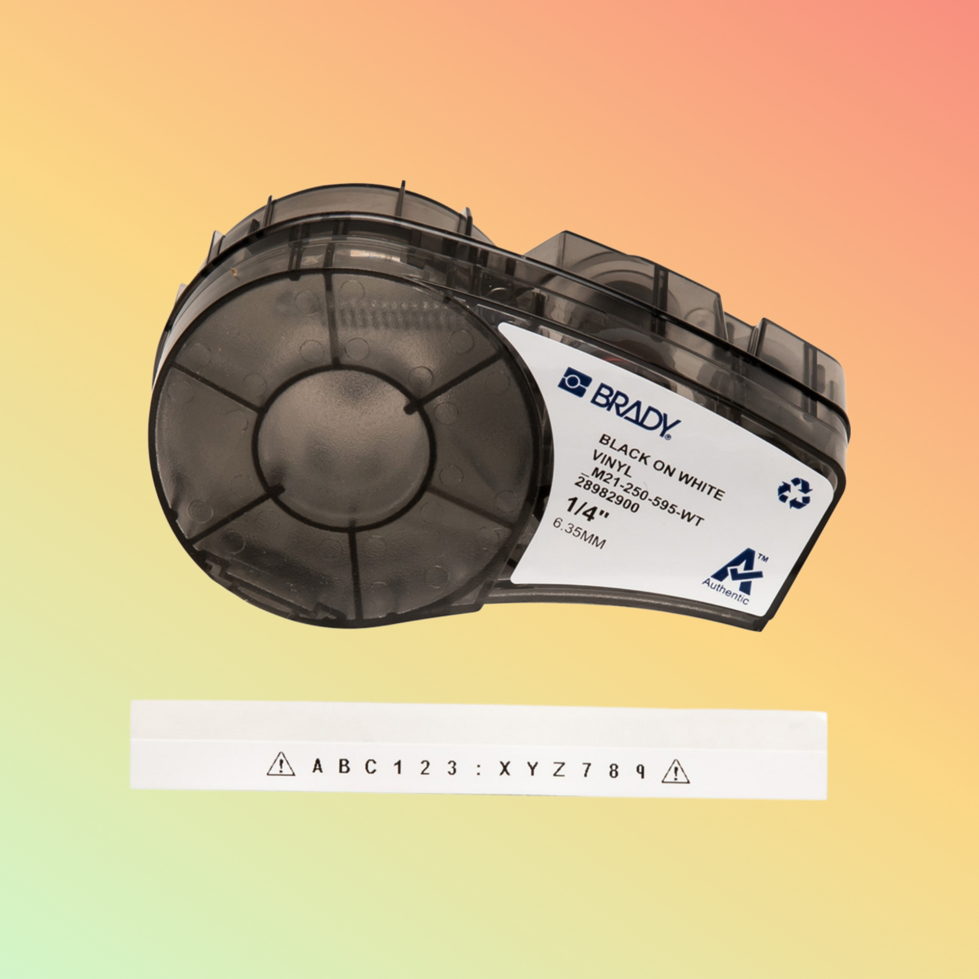 This Vinyl Label Tape is designed for use in demanding industrial and outdoor environments, offering reliable performance in extreme weather conditions. With a 0.25" width and black text on a white background, it ensures high contrast and easy readability. The tape is compatible with M21 printers and comes with a matching ribbon, delivering sharp and durable prints that resist fading, peeling, and abrasion. Its strong adhesive backing ensures it remains securely attached to various surfaces, including metal, plastic, and wood.