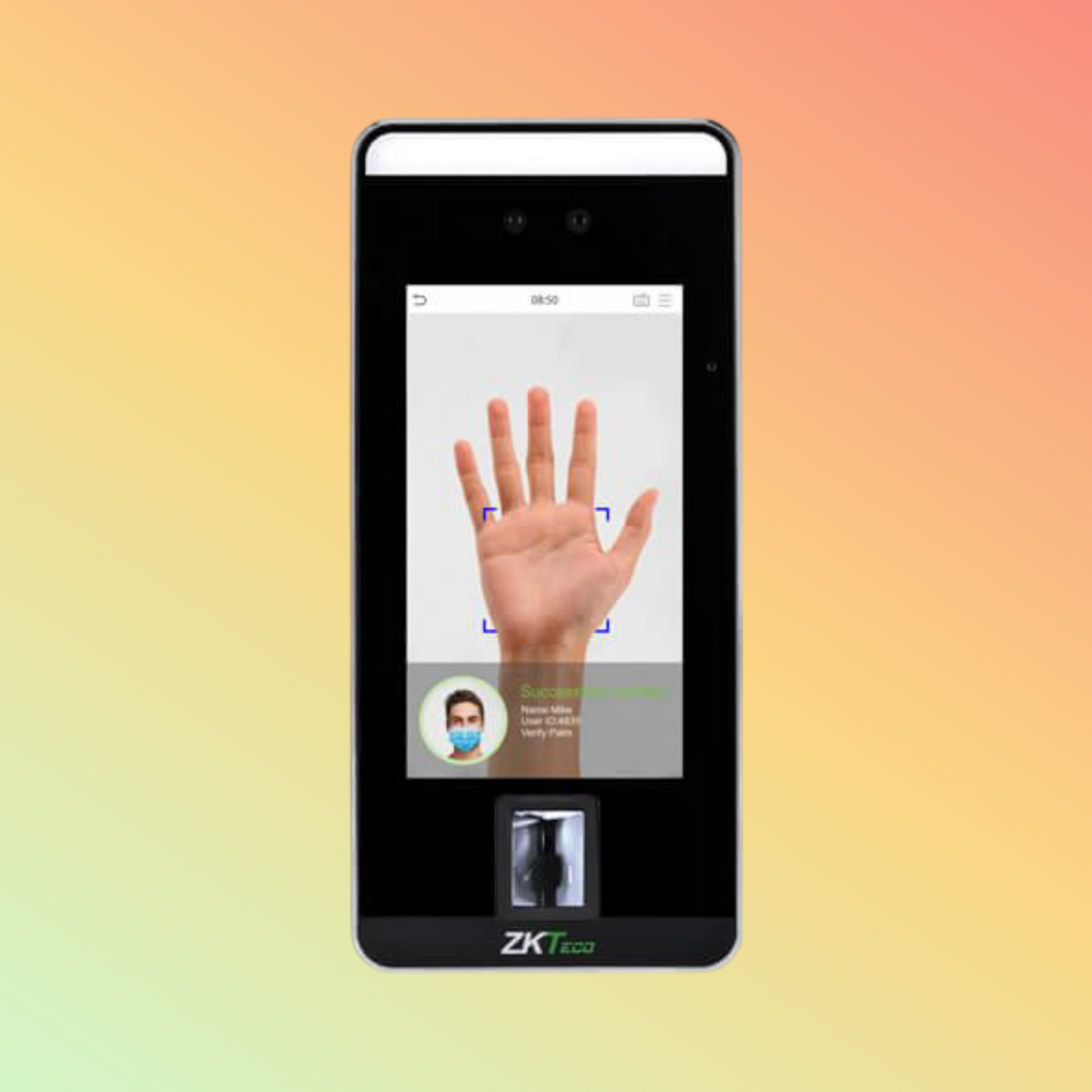 - Face and Palm Recognition: Utilizes visible light and infrared facial recognition paired with palm recognition to ensure accurate and hygienic user verification.